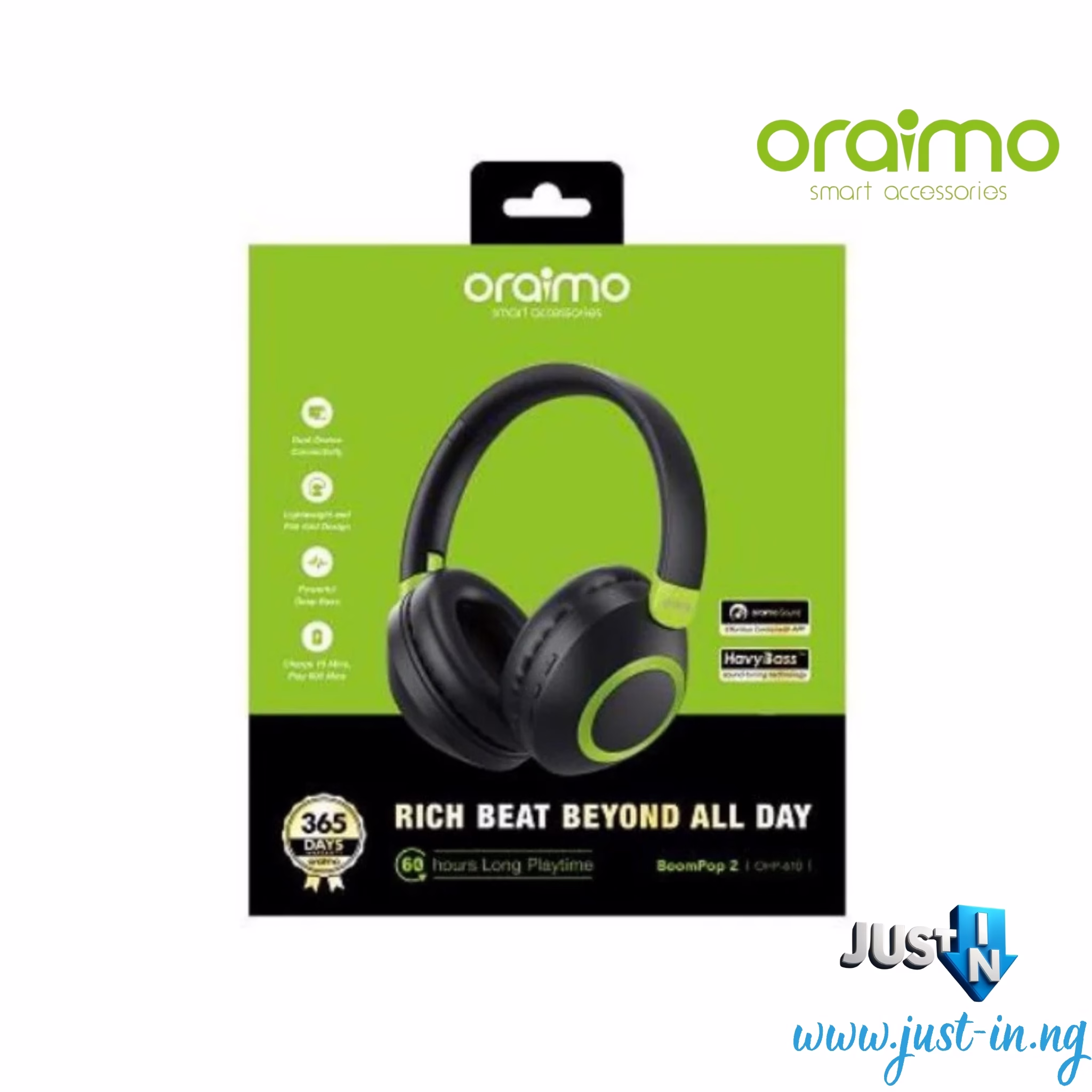 Discover the Oraimo BoomPop 2S OHP-610S Bluetooth Headset — delivering deep bass, 60-hour playtime, ENC dual mic clarity, and HavyBass™ sound. Perfect for travel, work, and everyday entertainment.